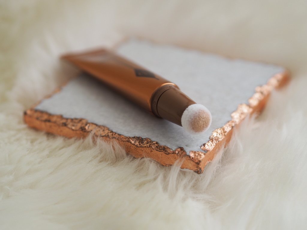 I got a preview of this a few months ago and knew I’d be buying it and you’ll see why later. At first, I was a bit concerned by the spongey applicator and wondered would I waste a lot of product with it. But see the brown plastic section between the sponge and the rest of the tube? It has a locking mechanism so there’s no wastage that way. But when we’re talking about a squeezy tube, always take a gentle approach or you’ll squeeze too much out! Now back to the sponge. It’s got more of a soft fleece texture and you know how I love me some fleece. This makes application so smooth and seamless and while Charlotte says we can use the tip to both apply and blend the makeup, I know if I did that, I’d end up with a whole cheek full of highlight rather than just a subtle somethin’ somethin’. A little goes a long way with this!