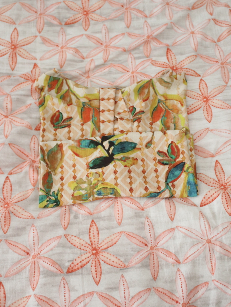 Taking one side, I fold it inwards, usually about a third of the width of the top, but you can judge for yourself depending on how you want it all to look when it’s done.