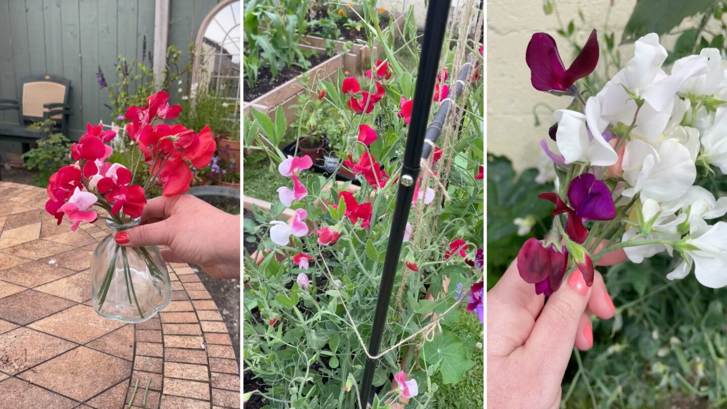 Sweetpeas like their roots to be cool, and their flowers and foliage in the sun. I’ve had great success planting them in both pots and the ground. They’ll need support, and I’ve grown mine up bamboo canes and up an archway, too.