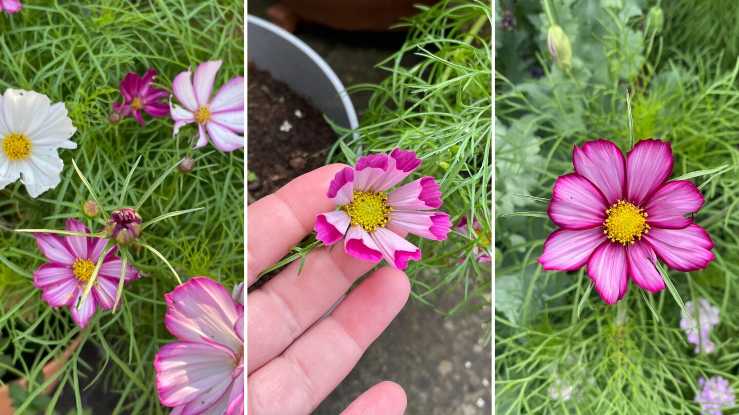 You can grow cosmos undercover from March to April or sow directly in pots or the ground in May. They usually germinate quickly, and as they get taller, you can pinch out the tips to get bushier plants. If you are looking for height, don’t pinch them out and let them grow tall in all their glory.